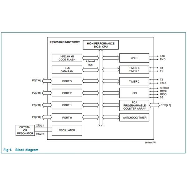 The P89V51RB2/RC2/RD2 are 80C51 microcontrollers with 16/32/64 kB flash and 1024 B of data RAM.
